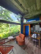 Loft com mezanino de 58m², totalmente mobiliado e equipado, cercado pela mata, ao final do Canto dos Araçás. Um espaço único, com grandes janelas do chão ao teto, varanda com rede, vista incrível para a Lagoa da Conceição e uma atmosfera artística que convida ao descanso, à inspiração e à conexão com a natureza.